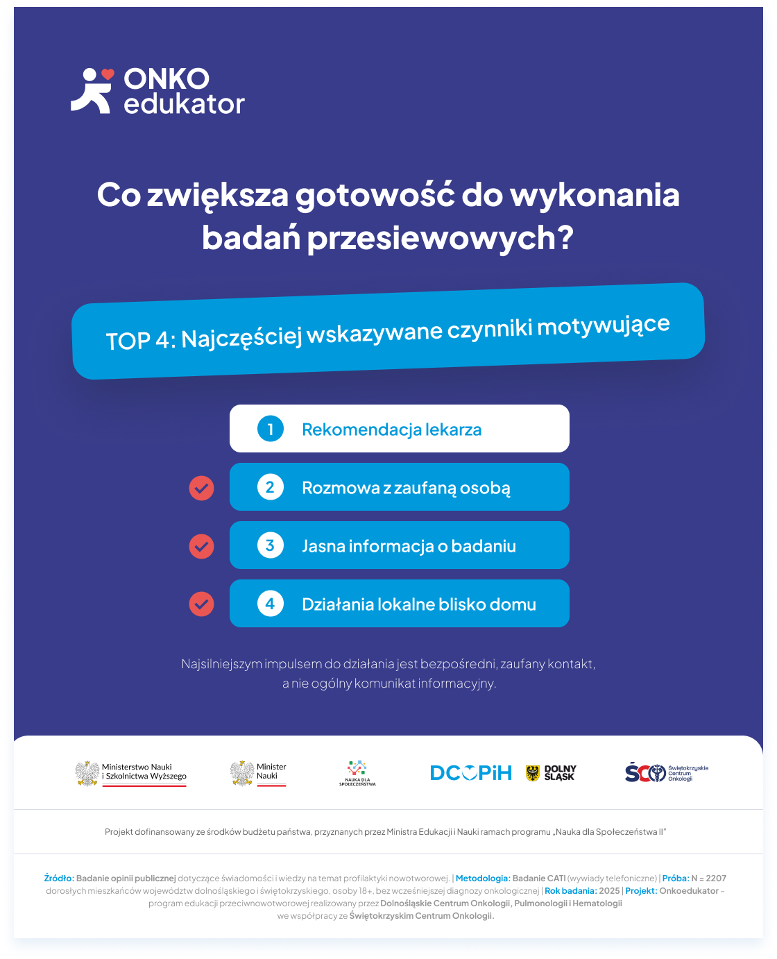 Zachęcamy do zapoznania się z wynikami badań, przeprowadzonych w ramach programu Onkoedukator, prowadzonego przez Dolnośląskie Centrum Onkologii, Pulmonologii i Hematologii (DCOPiH) we współpracy ze Świętokrzyskim Centrum Onkologii i partnerami społecznymi.