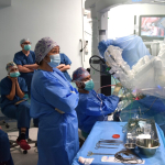 - Czuję się bardzo wyróżniony, bo mimo, że operujemy robotycznie dopiero od półtora roku, w listopadzie 2025 r. podpisałem umowę z firmą Synektik na proktoring, czyli uczenie i wprowadzanie nowych zespołów robotycznych w chirurgii głowy i szyi. Tym samym Klinika Otolaryngologii, Chirurgii Głowy i Szyi jest pierwszym w Polsce ośrodkiem uczącym chirurgii robotycznej w obszarze głowy i szyi. Do tej pory wszyscy musieliśmy jeździć za granicę, bo nie było polskiego ośrodka z uprawnieniami do uczenia innych – mówi dr Okła.