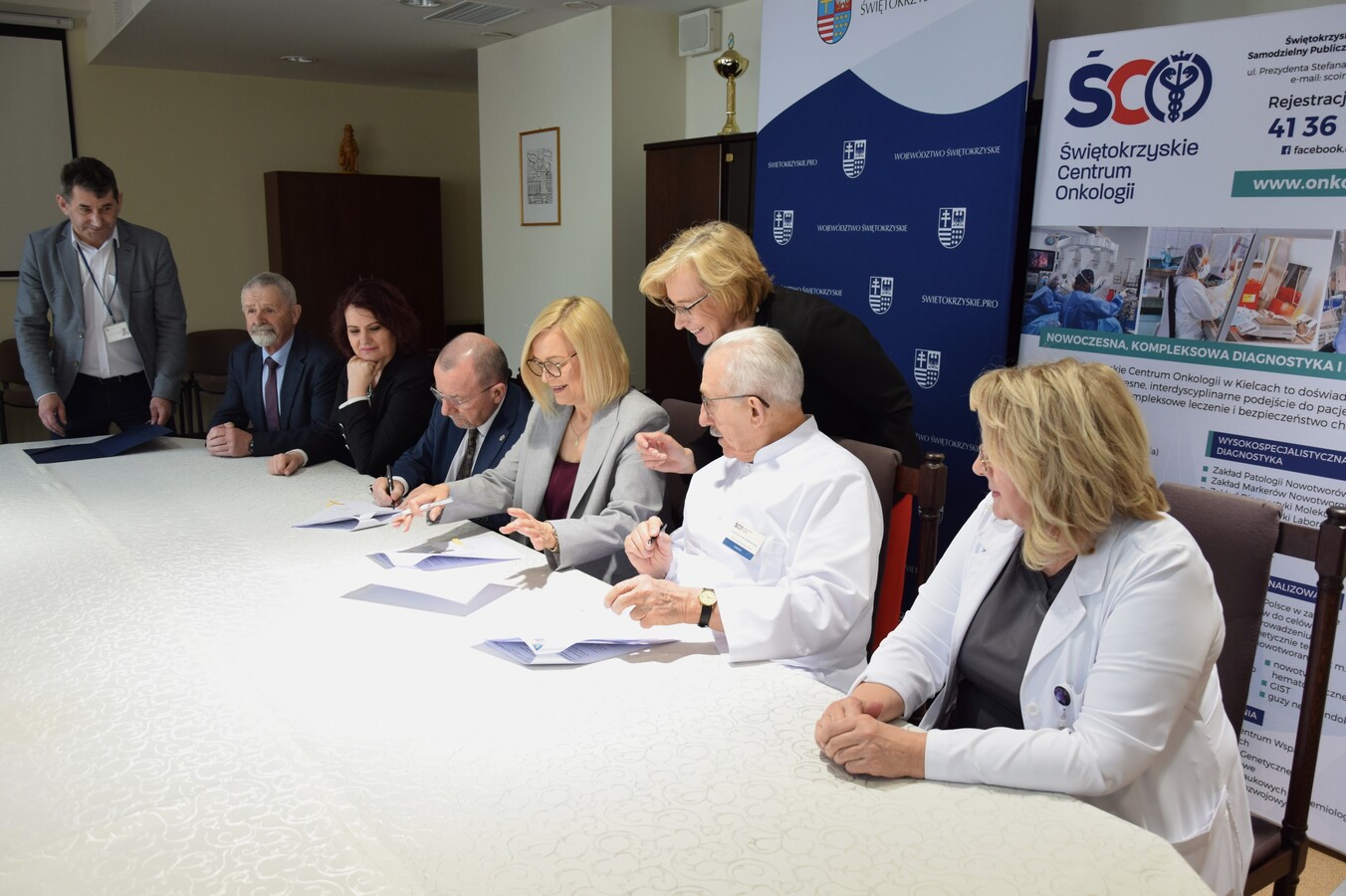 25.03.2026 w Świętokrzyskim Centrum Onkologii podpisano umowy o udzieleniu sześciu dotacji o łącznej wartości 34 mln 658 tys. zł z budżetu województwa na rzecz ŚCO. Dokumenty podpisali marszałek Renata Janik, wicemarszałek Marek Bogusławski oraz dyrektor ŚCO, prof. Stanisław Góźdź. W ramach tych środków dofinansowana zostanie m.in. budowa i wyposażenie Centrum Badań Molekularnych, modernizacja instalacji przyzywowej, a Dział Brachyterapii otrzyma nowy stół operacyjny oraz drukarkę 3D do tworzenia precyzyjnych aplikatorów.