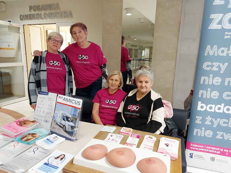 Dziękujemy naszej profilaktycznej ekipie w składzie: Ewelina Piwowarek - elektroradiolog, Kasia Rasała - sekretarka medyczna, Agnieszka Schabek - położna, Angelika Krawczyk - sekretarka medyczna za sprawne koordynowanie i przeprowadzenie badań, amazonkom ze Świętokrzyskiego Klubu Amazonki za wsparcie i edukację z zakresu samobadania piersi na fantomach.