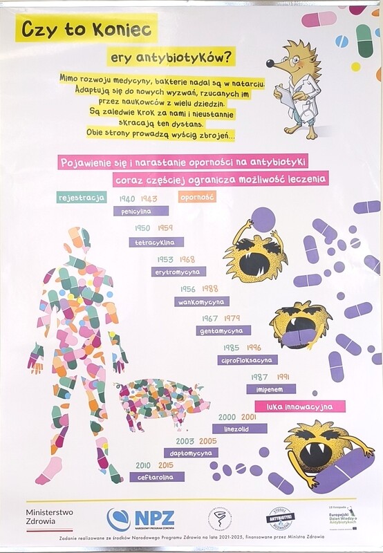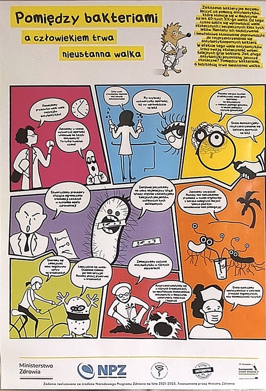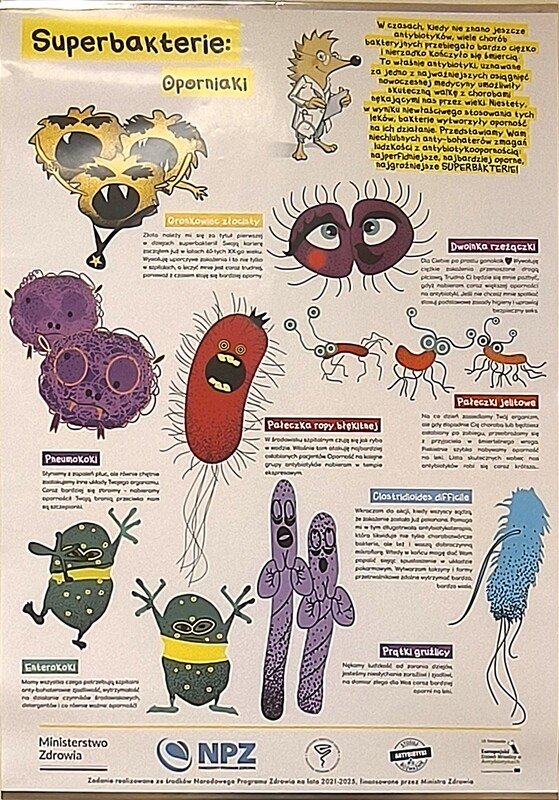 Z tej okazji pacjenci mogą zapoznać się z zasadami odpowiedzialnego stosowania antybiotyków - wystawa plakatów edukacyjnych znajduje się w budynku głównym ŚCO, na I piętrze w holu przy Konsoli RTG/USG. Natomiast dla pracowników szpitala dr hab. n. med. Bonita Durnaś, kierownik Zakładu Mikrobiologii Klinicznej wygłosiła wykład pt. „Wybór antybiotyków do terapii celowanej zakażeń wywołanych przez szczepy wielolekooporne na przykładzie wyników badań mikrobiologicznych pacjentów ŚCO”. Zapraszamy do zapoznania się z informacjami zawartymi na plakatach.