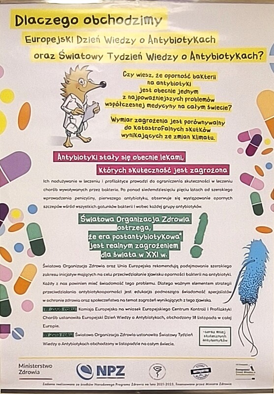 Świętokrzyskie Centrum Onkologii aktywnie uczestniczy w obchodach Europejskiego Dnia Wiedzy o Antybiotykach (18 listopada) oraz Światowego Tygodnia Wiedzy o Antybiotykach (18-24 listopada).