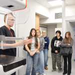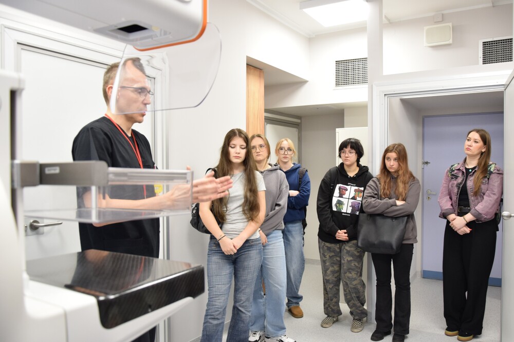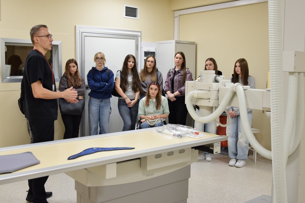 Pod opieką Agnieszki Buchcic i Michała Wyporkiewicza z Zakładu Diagnostyki Obrazowej odwiedzili m.in. pracownię mammografii, pracownie tomografii komputerowej oraz pracownię RTG.