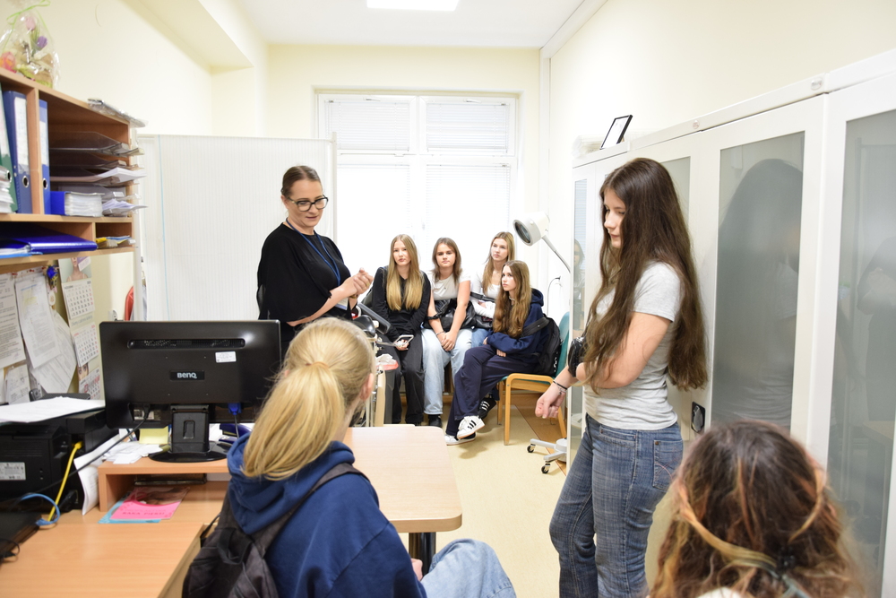 O profilaktyce – znaczeniu badań, świadomych wyborów zdrowotnych i czynnikach ryzyka – opowiadała Katarzyna Majka, położna i specjalista ds. promocji zdrowia z Zakładu Profilaktyki Onkologicznej. Następnie uczniowie wyruszyli w krótką trasę po wybranych pracowniach i zakładach ŚCO.