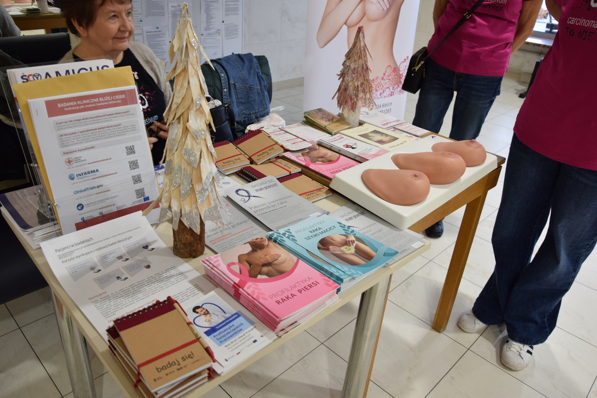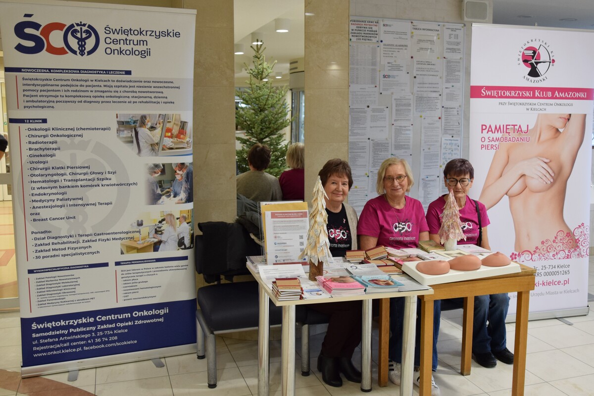 6 grudnia odbyła się ostatnia w tym roku biała sobota w ŚCO. Wykonano 77 badań. 50 pań skorzystało z profilaktycznej mammografii, a 27 – z diagnostyki HPV w Programie profilaktyki raka szyjki macicy. Ponadto amazonki uczyły samobadania piersi i wręczały drobne upominki – notesiki przypominające o regularnych badaniach. Zachęcaliśmy również do udziału programie Profilaktyka Świętokrzyskich Pracowników, zarówno panie jak i panów, wyposażając wszystkich odwiedzających nasze stoisko w ulotki i materiały edukacyjne dotyczące tego programu.