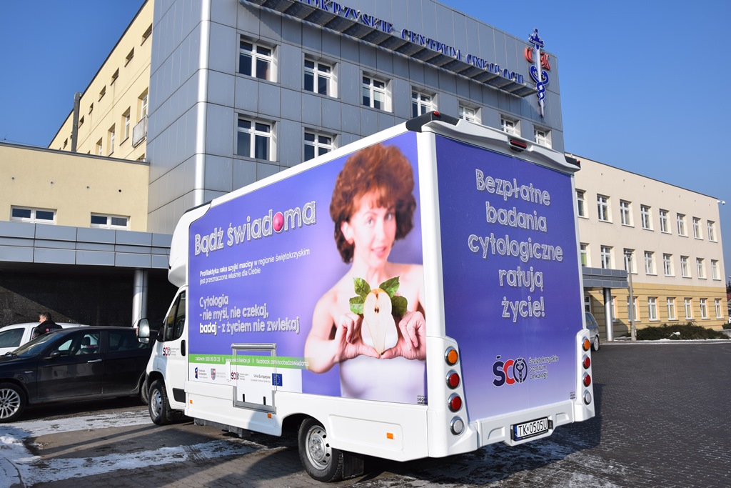 Cytobus Świętokrzyskiego Centrum Onkologii skonstruowany specjalnie dla mieszkanek miejscowości, które nie mają dostępu do opieki ginekologicznej, przyjeżdża na życzenie pań do ich miejsca pracy lub zamieszkania. Specjalistyczny pojazd został zaprojektowany i wykonany do projektów „Być świadomą kobietą”. Wewnątrz cytobusa znajduje się gabinet położnej z fotelem ginekologicznym i niezbędnym wyposażeniem oraz wydzieloną kabiną higieny intymnej z wc i bieżącą wodą , żeby pacjentka mogła się rozebrać i przygotować do badania. Pojazd jest ogrzewany, klimatyzowany, wyposażony w wysuwany stopień ułatwiający wejście do gabinetu.