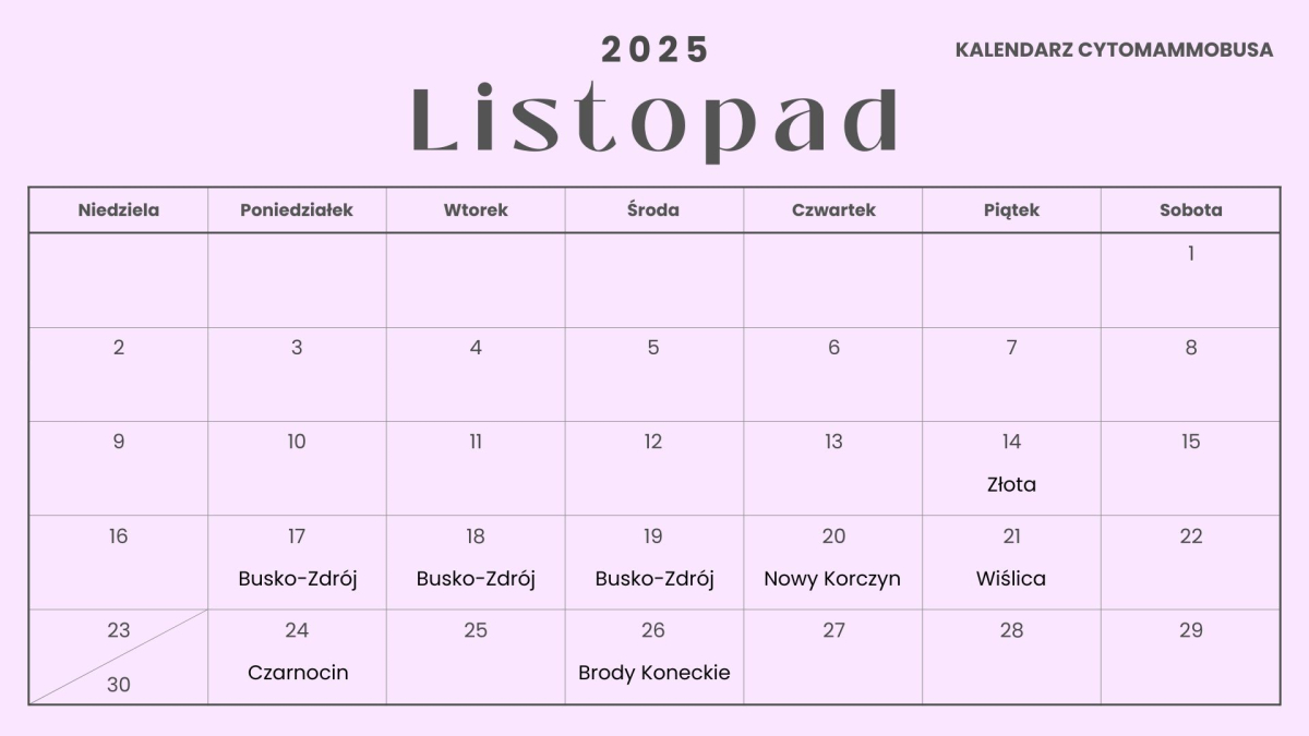 Cytomammobus Świętokrzyskiego Centrum Onkologii w listopadzie będzie stacjonował w następujących miejscowościach: