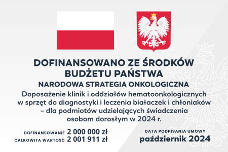 1/13/44/2024/38/306 - "Doposażenie klinik i oddziałów hematoonkologicznych w sprzęt do diagnostyki i leczenia białaczek i chłoniaków” – dla podmiotów udzielających świadczenia osobom dorosłym w 2024 r.